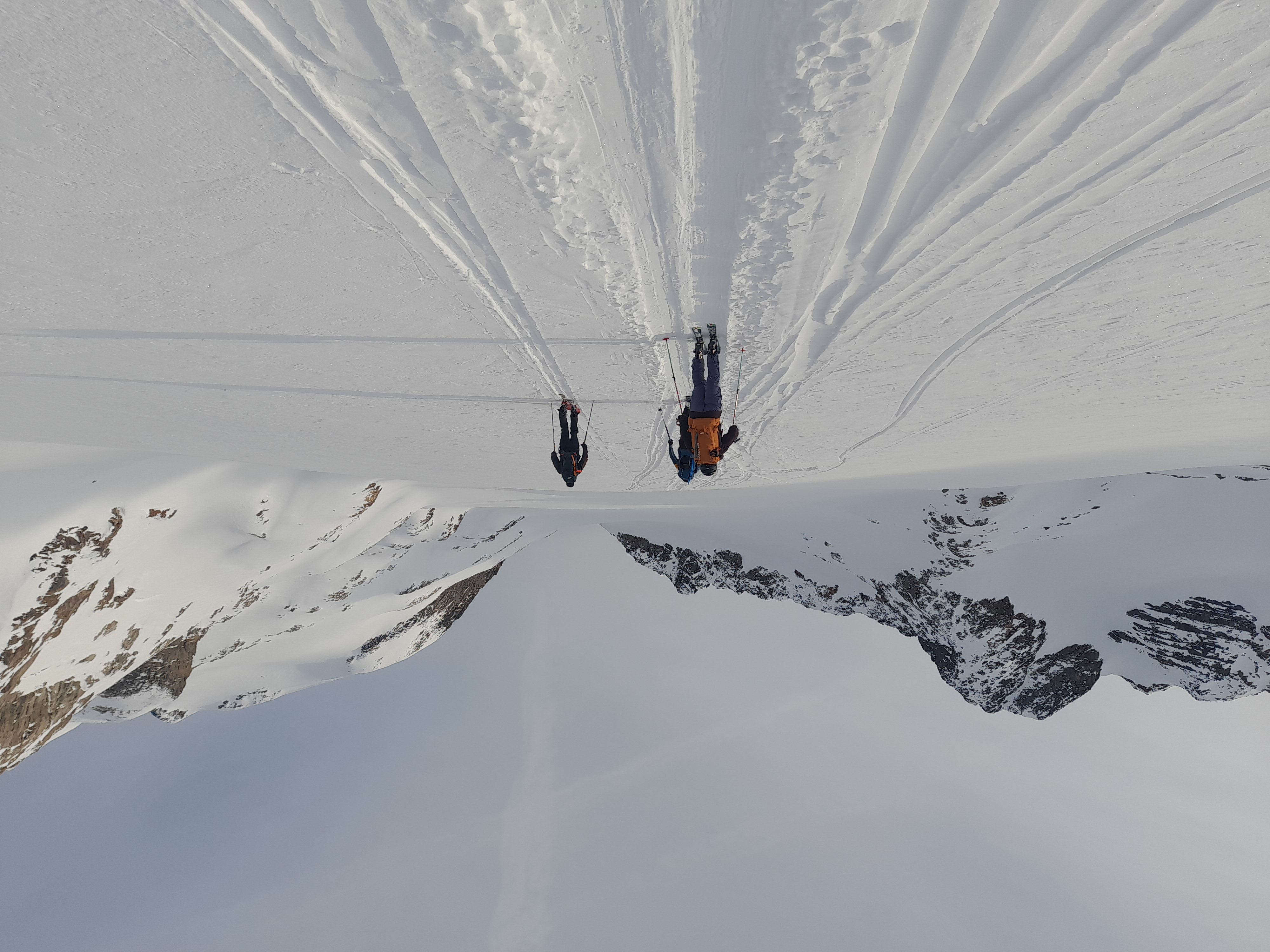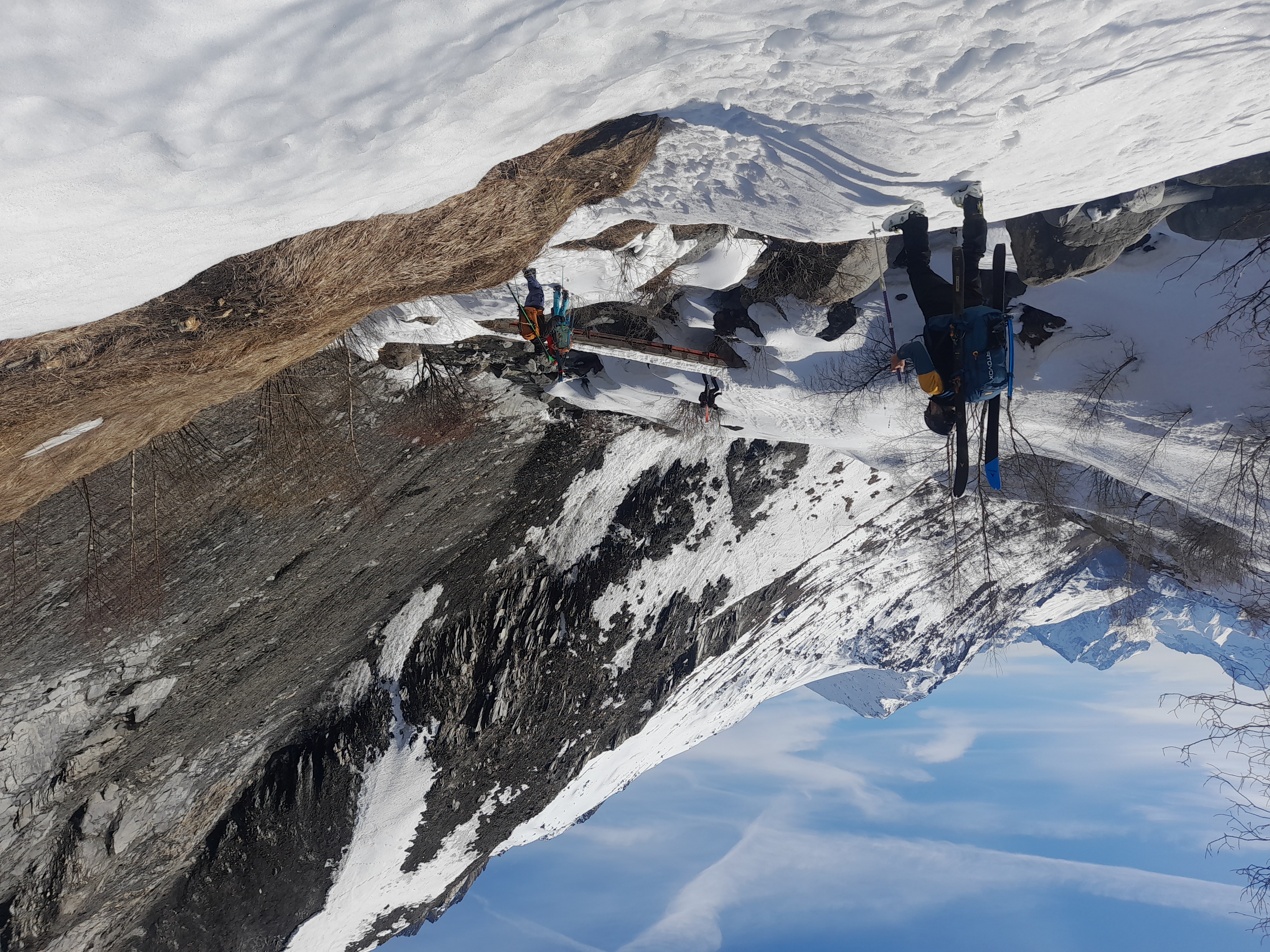 Retour dans les Grandes Rousses par le col des Quirlies en restant haut sur la pente jusqu'à Clavans le Haut, tant qu'il était possible de skier.
